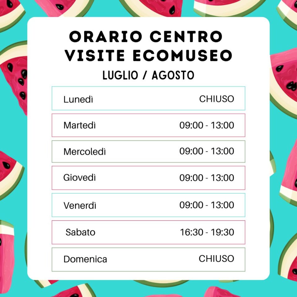 Il Centro Visite dell’Ecomuseo rimarrà CHIUSO nei giorni 1-2-3 novembre. Da lunedì 4 novembre sarà aperto con il seguente orario: APERTO da lunedì a venerdì […]