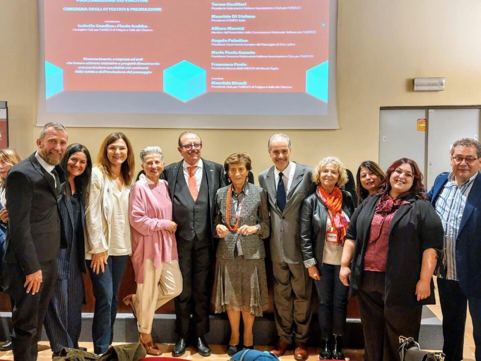 Il premio è stato consegnato da Teresa Gualtieri – Presidente Federazione Italiana Associazioni e Club per l’UNESCO alla presenza, tra gli altri, di Maurizio Di Stefano – Presidente per l’Italia di ICOMOS (Consiglio Internazionale dei Monumenti e dei Siti).